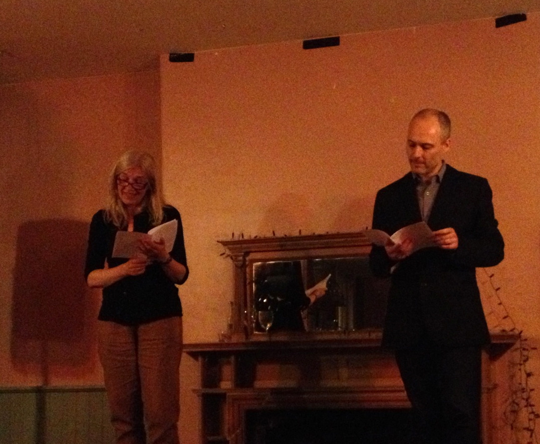 West North East, Matthew Clegg’s first full-length poetry collection (and the first hardback book to appear from Longbarrow Press) is launched at the Shakespeare, Sheffield. The readings begin with ‘Fugue’, a trance-like sequence performed by Clegg and poets Fay Musselwhite, Angelina Ayers, Karl Riordan and Helen Mort. The second part offers a compelling new arrangement of ‘Edgelands’ (read by Clegg and Musselwhite), framed by the sounds of Hillsborough’s streetscapes; the third and final part focuses on the book’s ‘Chinese Lanterns’ sequence, in which Clegg plays Li Po to Andrew Hirst’s obdurate, gargling Tu Fu. Thanks to Ruth Palmer for the delicious West North East cakes and to Emma Bolland for the photo of Clegg and Musselwhite performing ‘Edgelands’.