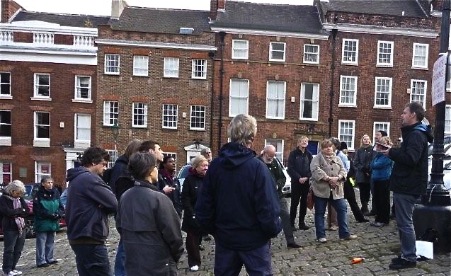 Chris Jones reading in Paradise Square (photograph by Nikki Clayton)